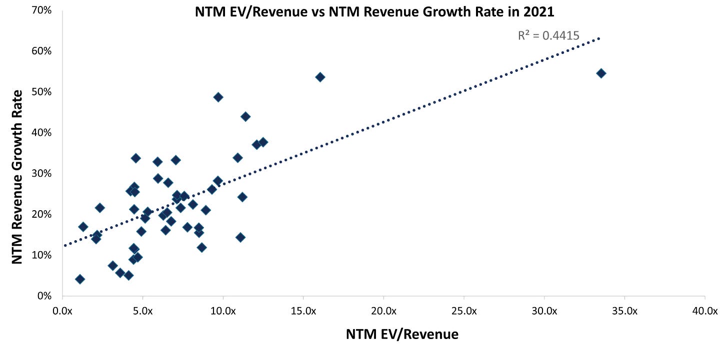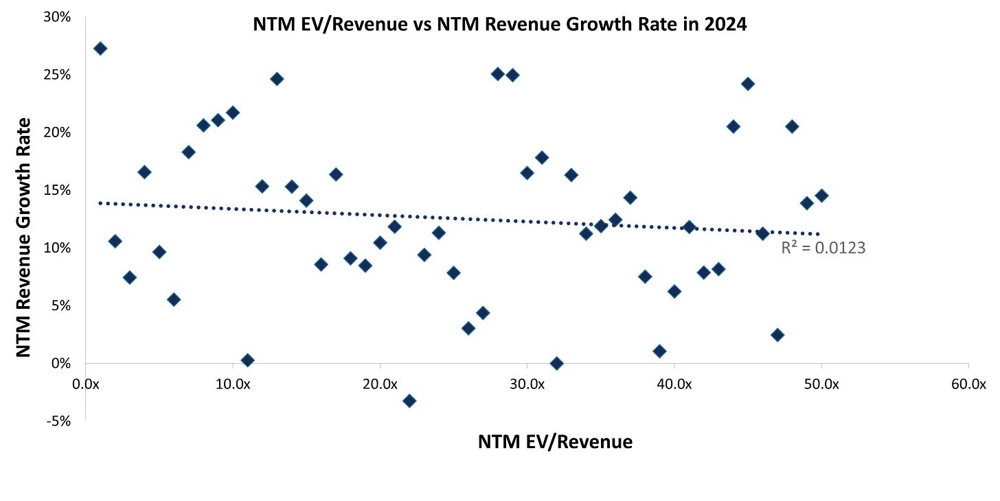 An analysis of a basket of over 45 US Public SaaS companies shows that the correlation between revenue and valuation is not as straightforward now (2024) as it used to be in the 2021 era. While profitability is certainly the other key driver, the margin expansion journeys have not been sufficiently dramatic to compensate for the trade-off on revenue growth. The absolute revenue base of companies have also become a key point to consider.